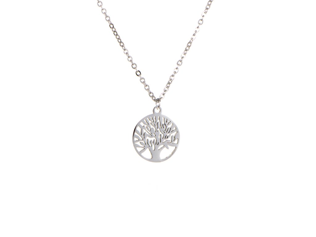 Řetízek z chirurgické oceli o rozměru 45 - 50 cm, s přívěškem Strom života. Chirurgická ocel je velmi pevný a odolný kov s vysokým leskem. Šperky z tohoto kovu mají stálou barvu a jsou vhodné i pro alergiky.
