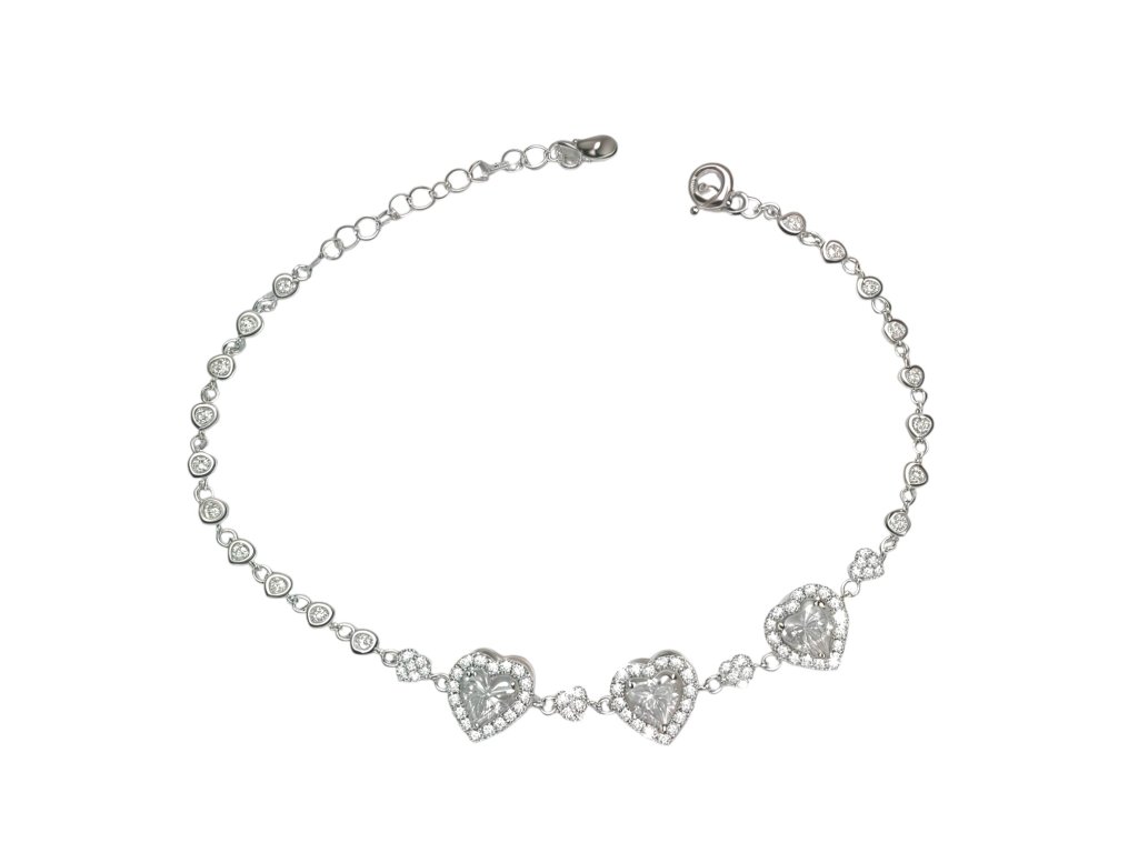Stříbrný náramek se srdíčky. Díky nastavitelnému zapínání si můžete zvolit délku náramku mezi 17 - 20 cm. Náramek je vyroben ze stříbra o ryzosti 925 a je opatřen puncem ryzosti. Všechny naše stříbrné šperky jsou potaženy vrstvou rhodia, drahého kovu, který dodává vysoký lesk a chrání šperk proti poškrábání. Potažení vrstvou rhodia dodává šperkům také dokonalou, stříbřitě bílou barvu.